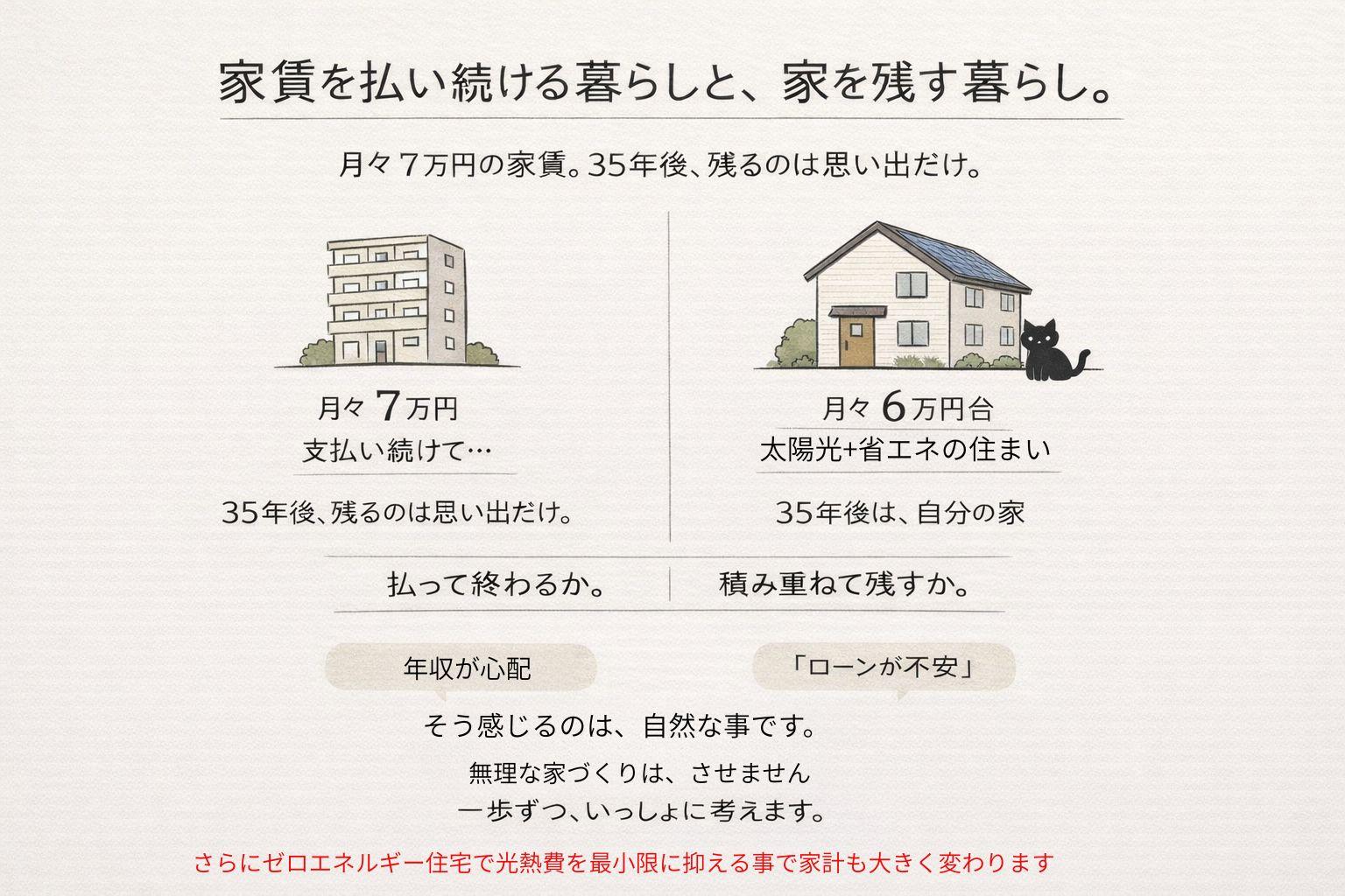 「払い続けるだけの家賃」から 「未来に残るマイホーム」へ その一歩を、今ここから。