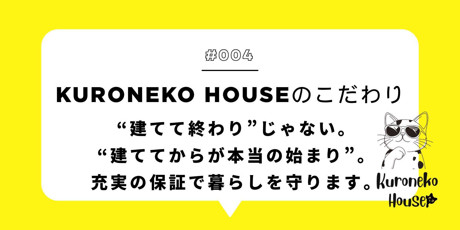 4. 私たちの誇り 「安くて、いい家。」 それがクロネコハウスの原点であり、変わらない誇りです。 これからも、地域の皆さまに寄り添い、ずっと安心できる家を届け続けます。
