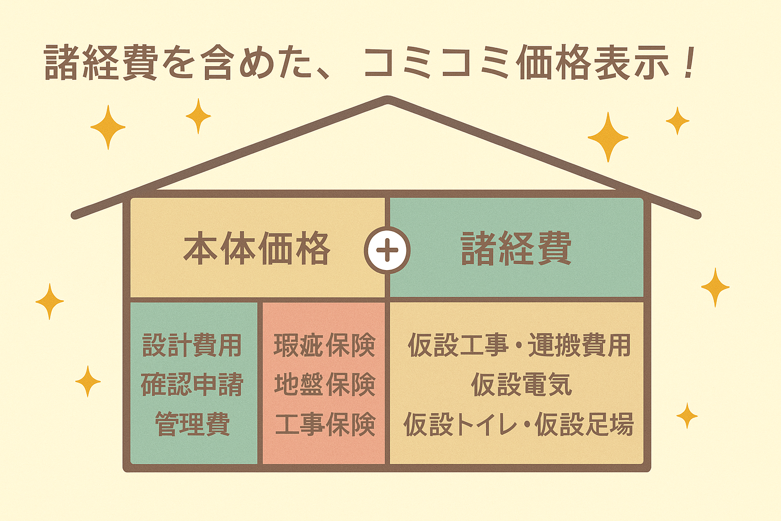 クロネコハウスでは、そんなお客様の不安をなくすために、 **“安心のコミコミ価格”**という明瞭な仕組みを採用しています。