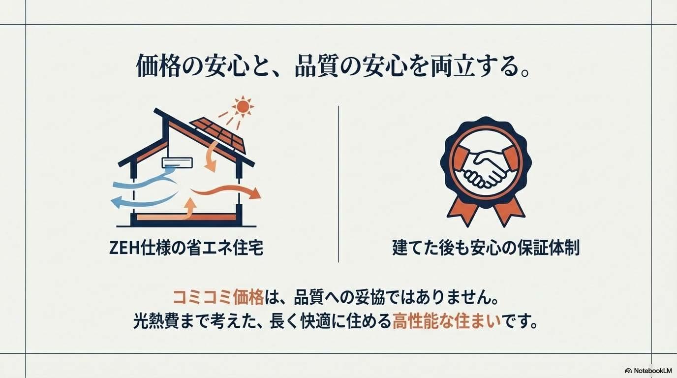 「この価格で大丈夫?」という不安、よくわかります。 でもご安心ください。私たちの家は“安かろう悪かろう”ではありません。 断熱・耐震・設備・デザイン――すべてに妥協なし。 「この価格でこのクオリティ!?」と驚かれるお客様が多数です。