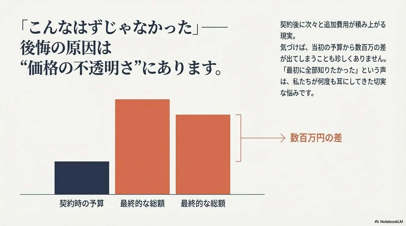 「土地と建物を合わせると、返済が不安になる」「コストを抑えようとすると、デザインや性能を諦めなければならない」